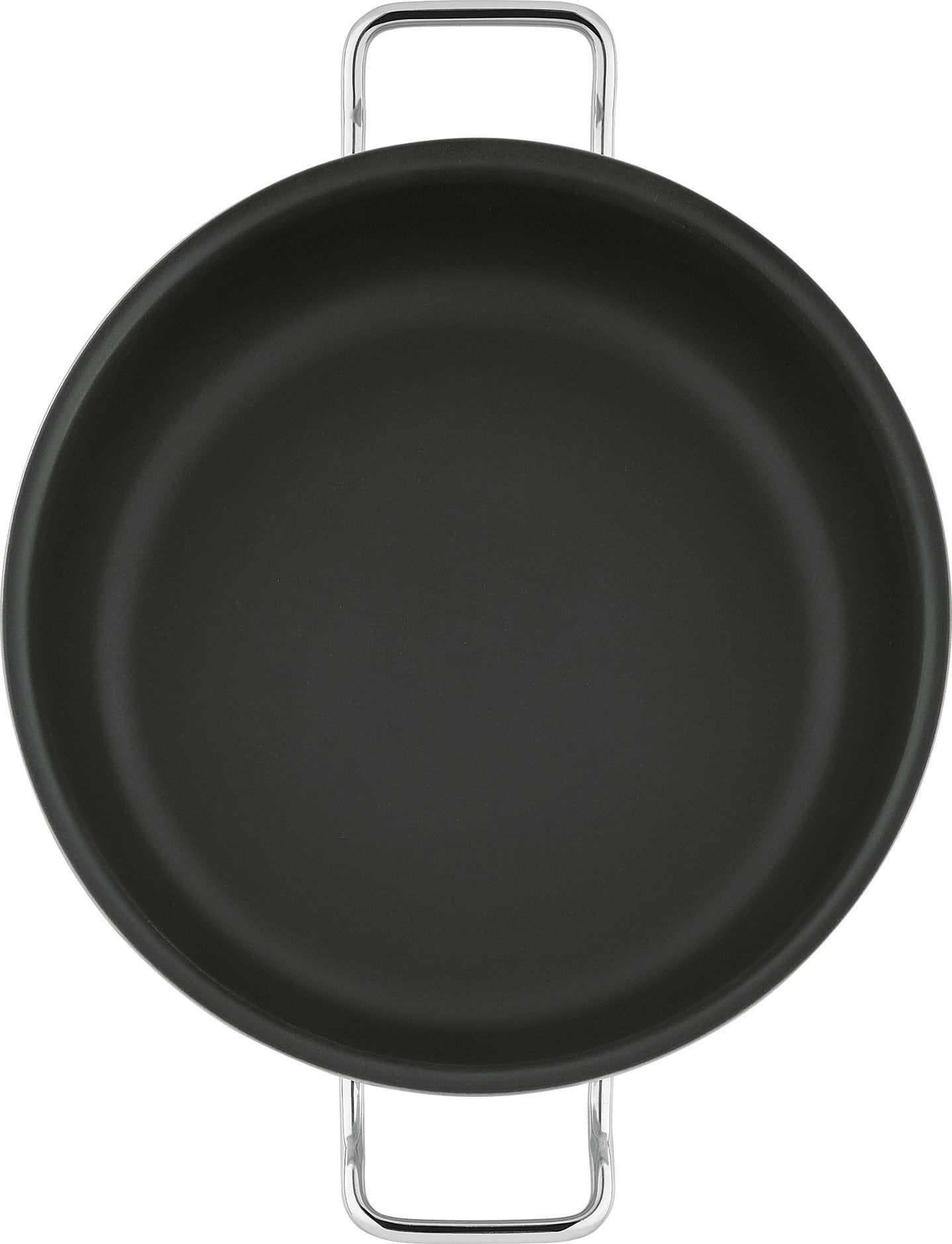 - 5-Lagen-Mehrschichtmaterial: Garantiert eine optimale Wärmeleitung bis in den hohen Rand der Pfanne