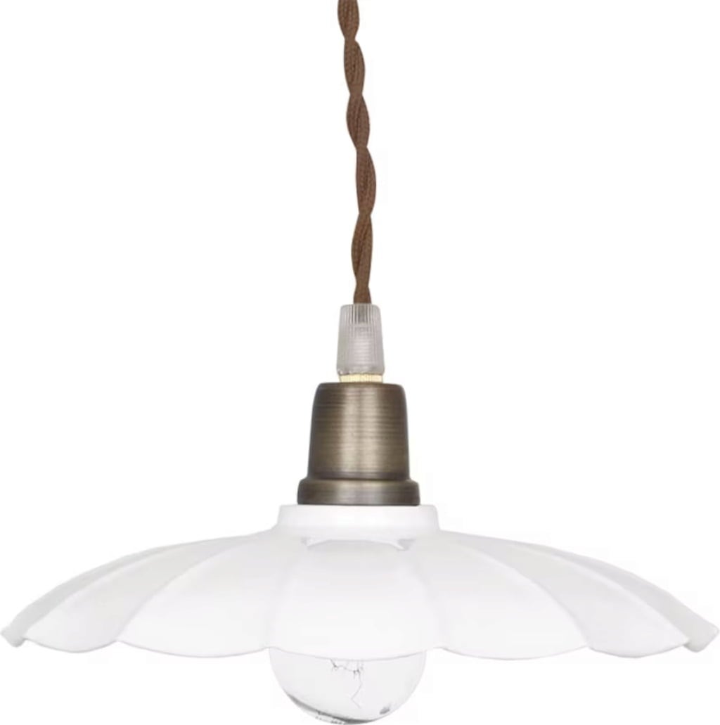 Der Sockel mit Messing-Finish bildet einen schönen Kontrast zum lackierten Lampenschirm aus Metall. Das Kabel besteht aus Stoff und hat eine optimale Länge von 150 cm.