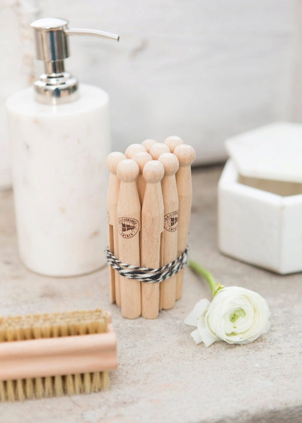 Mit den Wäscheklammern im Vintage-Look wird sogar das Aufhängen von Wäsche zum Vergnügen. Die Klammern aus Buchenholz liegen gut in der Hand und lassen sich einfach befestigen. Die Wäsche bleibt damit an Ort und Stelle, sodass sie auch ein Windstoß nicht von der Leine fegen kann.
