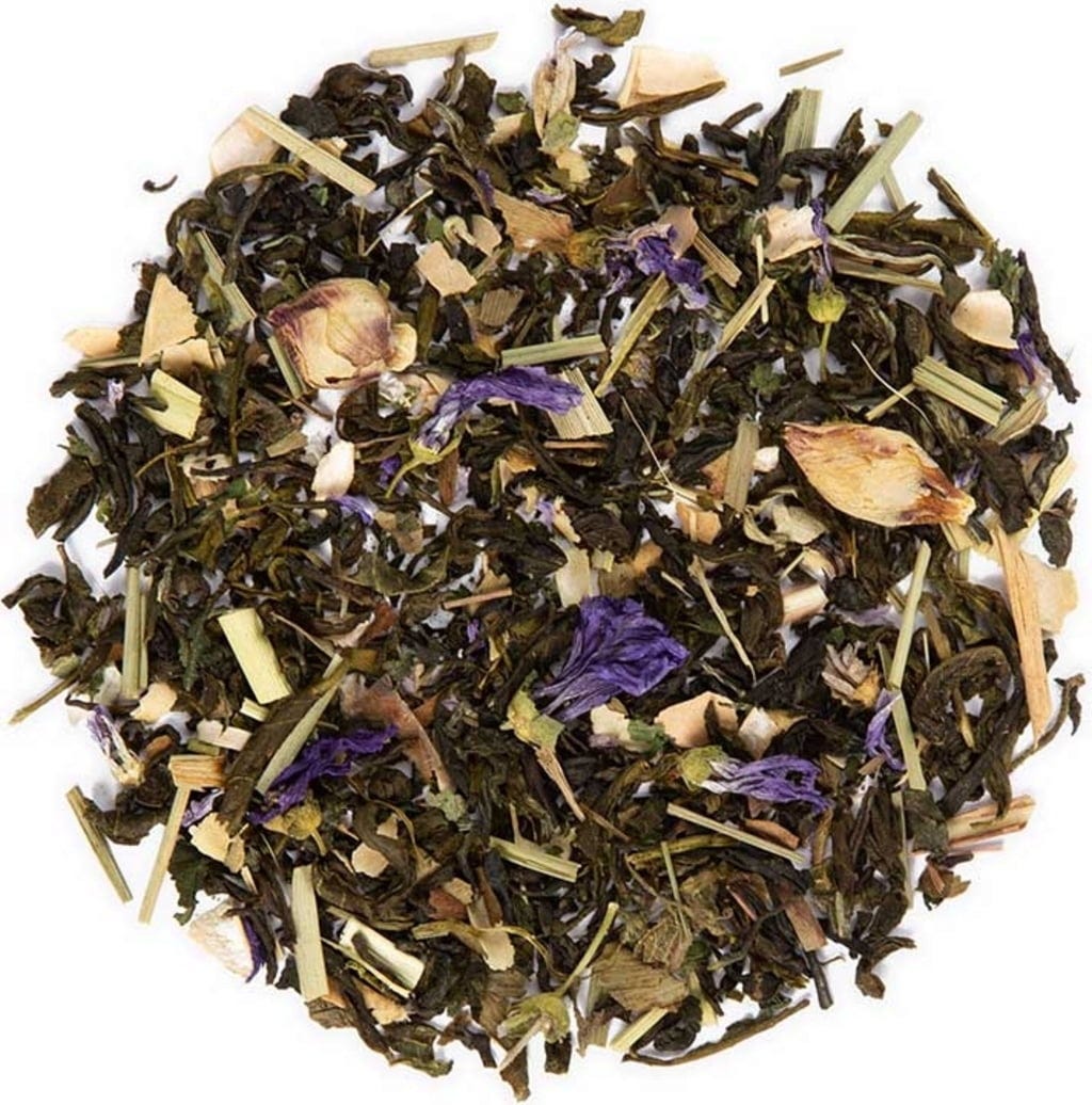 55 % Weißer Tee, 15 % Grüner Tee Jasmin, 6 % Lemongras, 5 % Brennnesselblätter, Bohnenschalen, Ginkgo, Malvenblüten, 2 % Hibiskusknospen weiß, 1 % Spirulina Algenpulver, natürliches Aroma