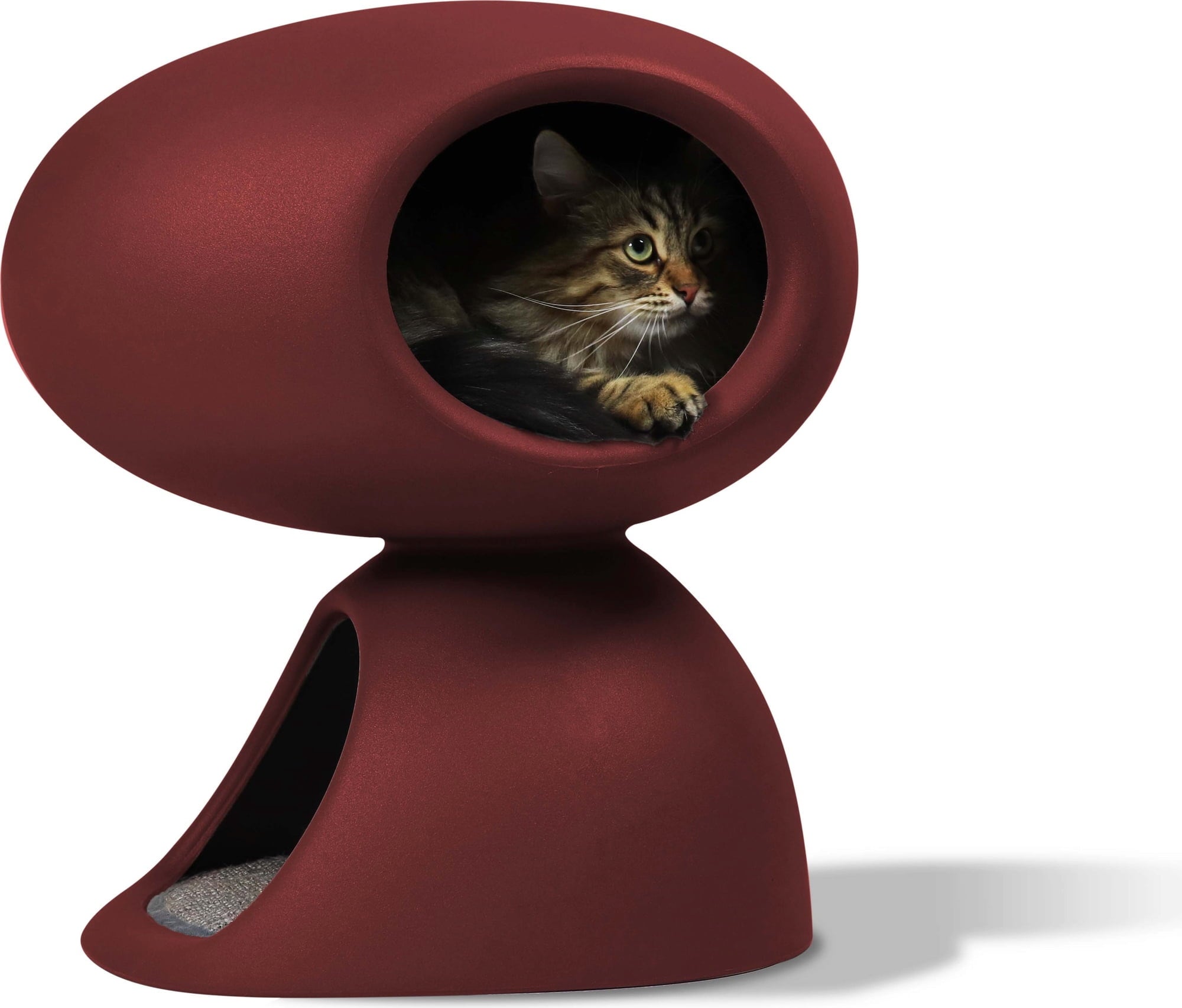 Eine tolle Designerwohnung für flotte Miezen und coole Kater. Cat Cave erinnert an zwei übereinander gestapelte Steine. Die untere Höhle ist mit einer Kratzmatte ausgestattet. Im ersten Stock darf man auf einem weichen Kissen entspannen und die Aussicht genießen.