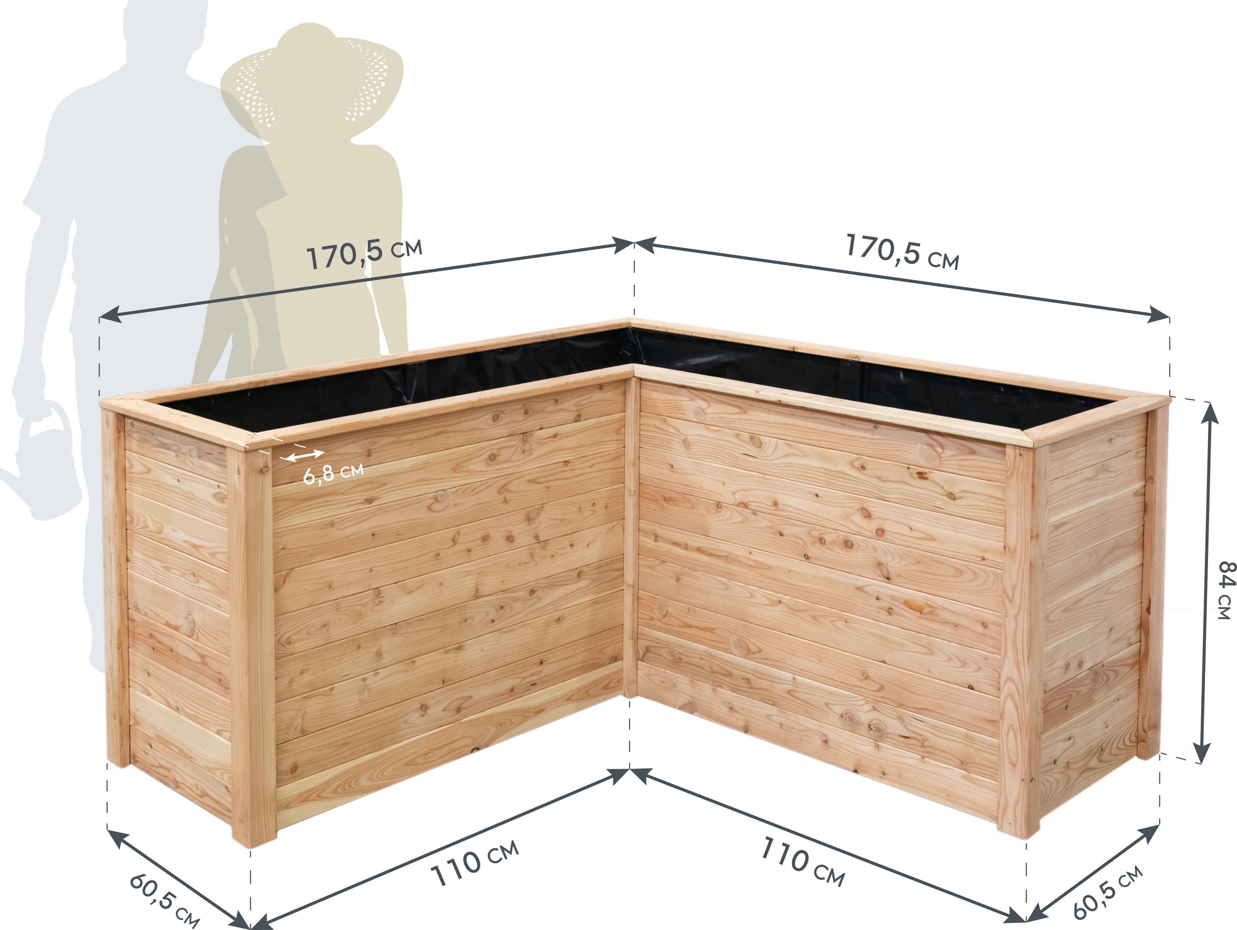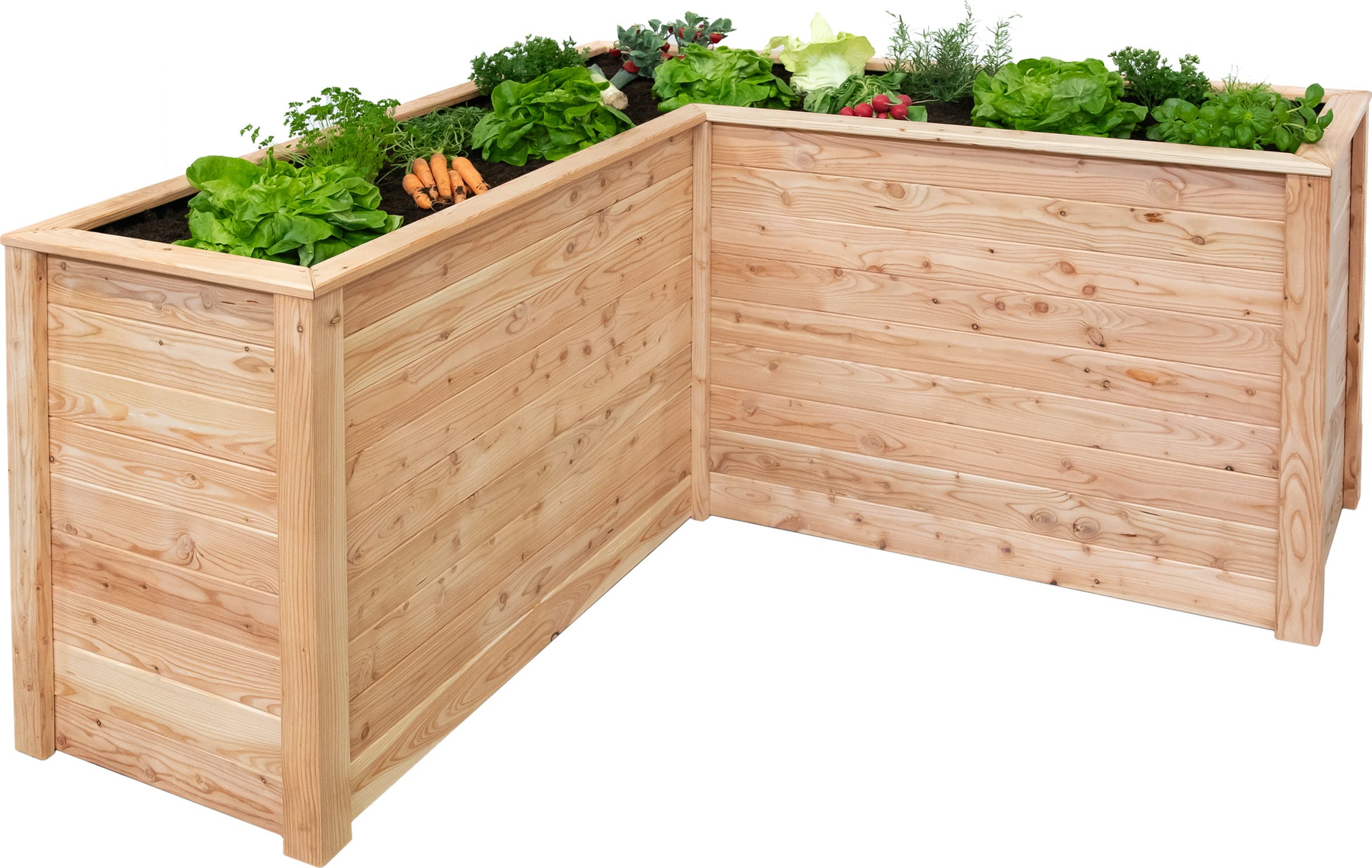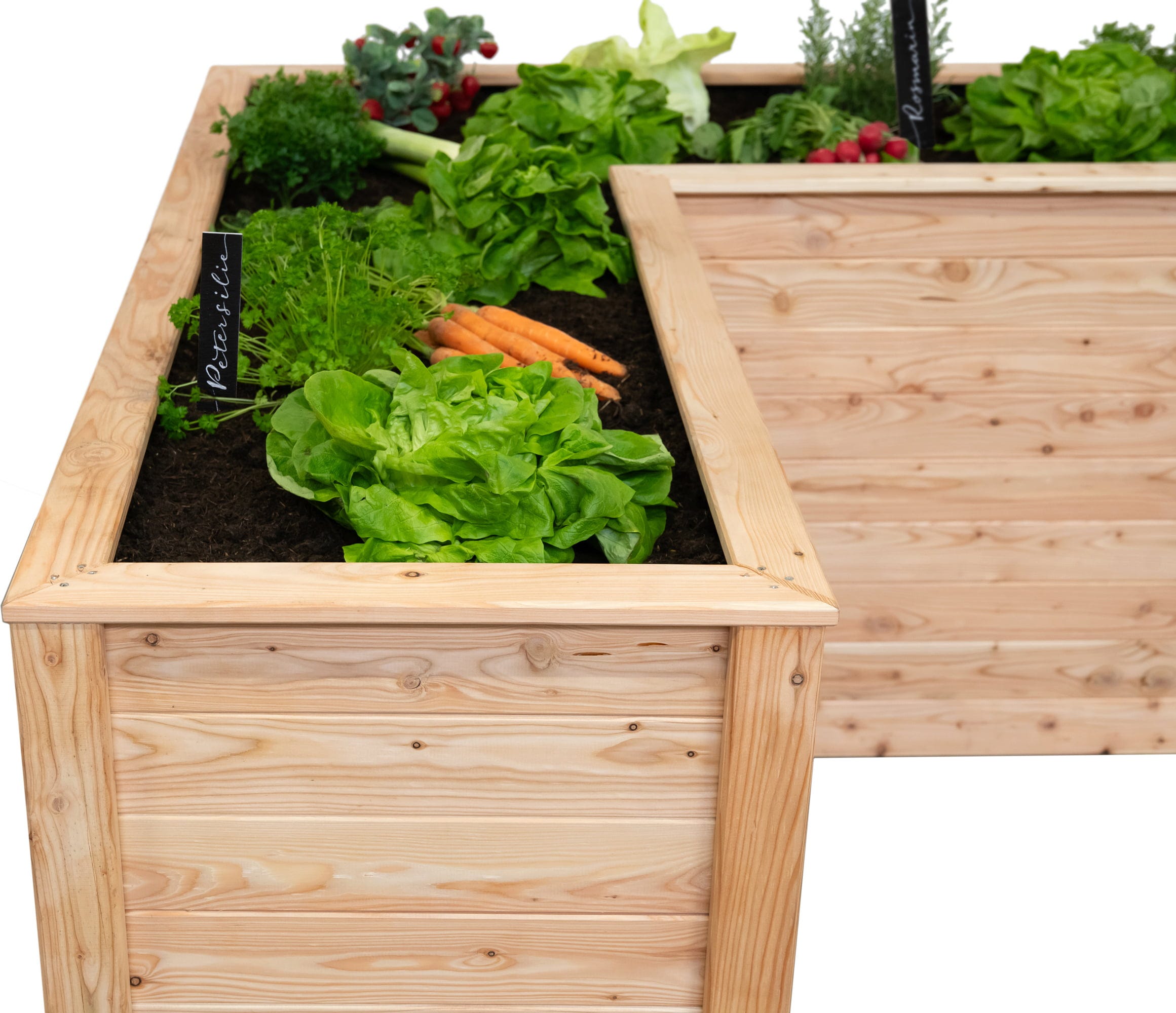 Mit dem Westmann Hochbeet Klassik L 170 schaffst du dir eine grüne Oase! Die markante L-Form fügt sich besonders harmonisch in die Ecken deines Gartens oder deiner Terrasse ein. Gefertigt aus massivem Lärchenholz, setzt du auf ein Material, das zu den härtesten und widerstandsfähigsten Hölzern zählt. Die hohe Dichte und der natürliche Harzanteil sorgen dafür, dass dein neues Gartenprojekt Wind und Wetter trotzt und dir über viele Jahre hinweg Freude bereitet.