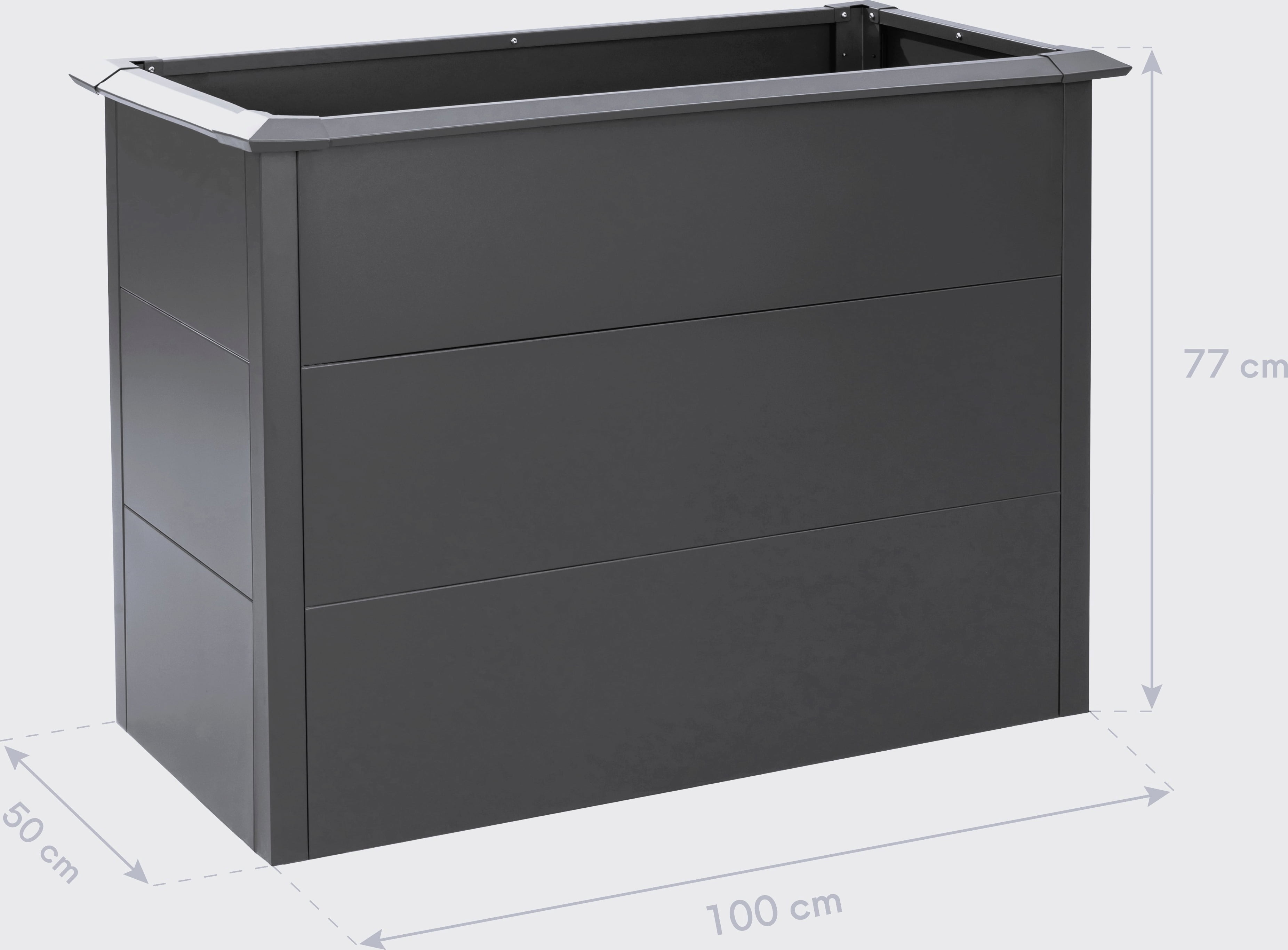 Das Westmann Hochbeet Primus ist die ideale Wahl für alle, die Wert auf eine klare, minimalistische Ästhetik und maximale Funktionalität legen. Gefertigt aus 1,0 mm starkem, galvanisiertem Stahl und veredelt mit einer hochwertigen Pulverbeschichtung in zeitlosem Anthrazit, fügt es sich nahtlos in moderne Garten- und Terrassengestaltungen ein.