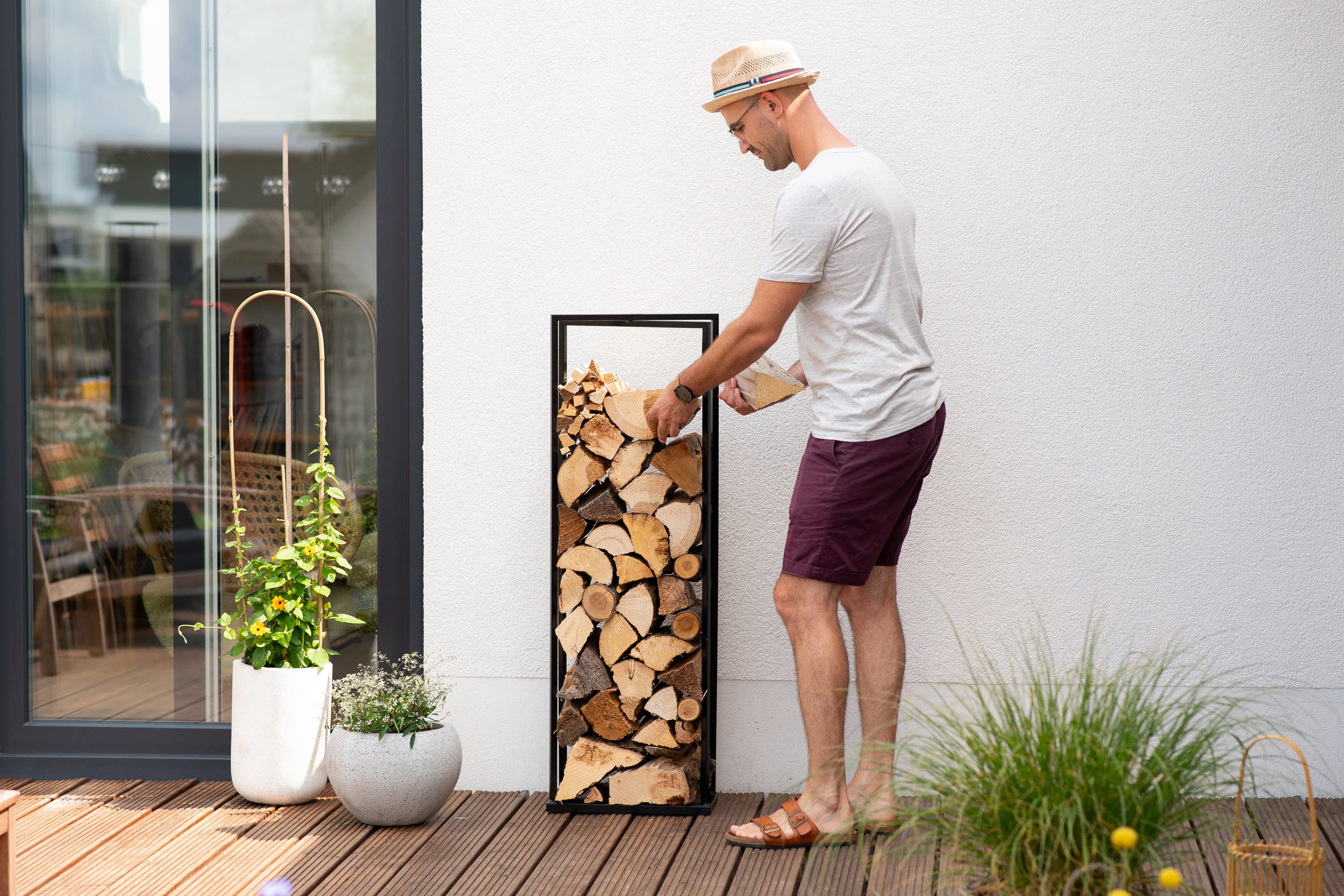Mit dem Kaminholzregal Xavier von Westmann holst du dir ein Stück puristisches Handwerk direkt an deine Feuerstelle! Das Design besticht durch eine klare, vertikale Linienführung im modernen Industrielook – so wird dein Kaminholz nicht nur ordentlich gestapelt, sondern wie ein Designobjekt in Szene gesetzt.