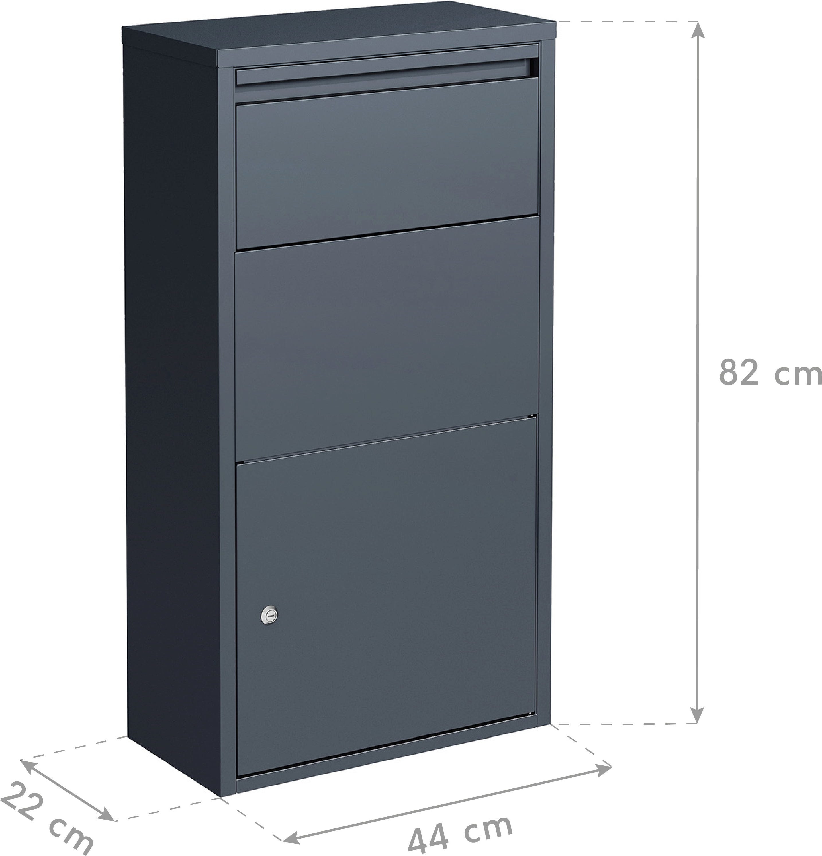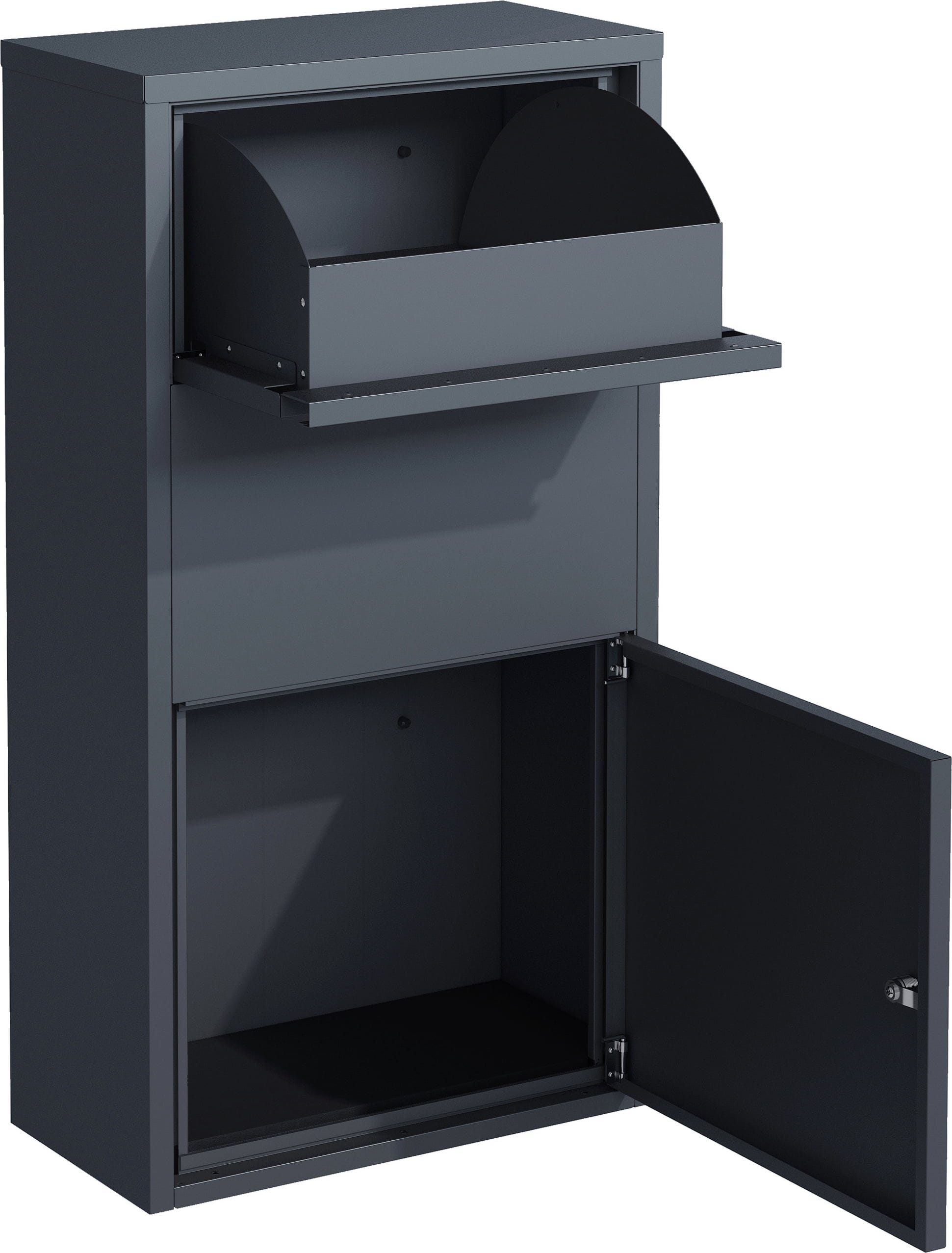 Diese smarte 2-in-1-Lösung kombiniert einen klassischen Briefkasten für deine tägliche Post mit einer geräumigen Paketbox für deine Online-Bestellungen. Das zeitlose Design in elegantem Anthrazit fügt sich dabei perfekt in moderne Eingangsbereiche ein und wertet dein Grundstück optisch auf, während du von einer kontaktlosen und sicheren Zustellung rund um die Uhr profitierst.