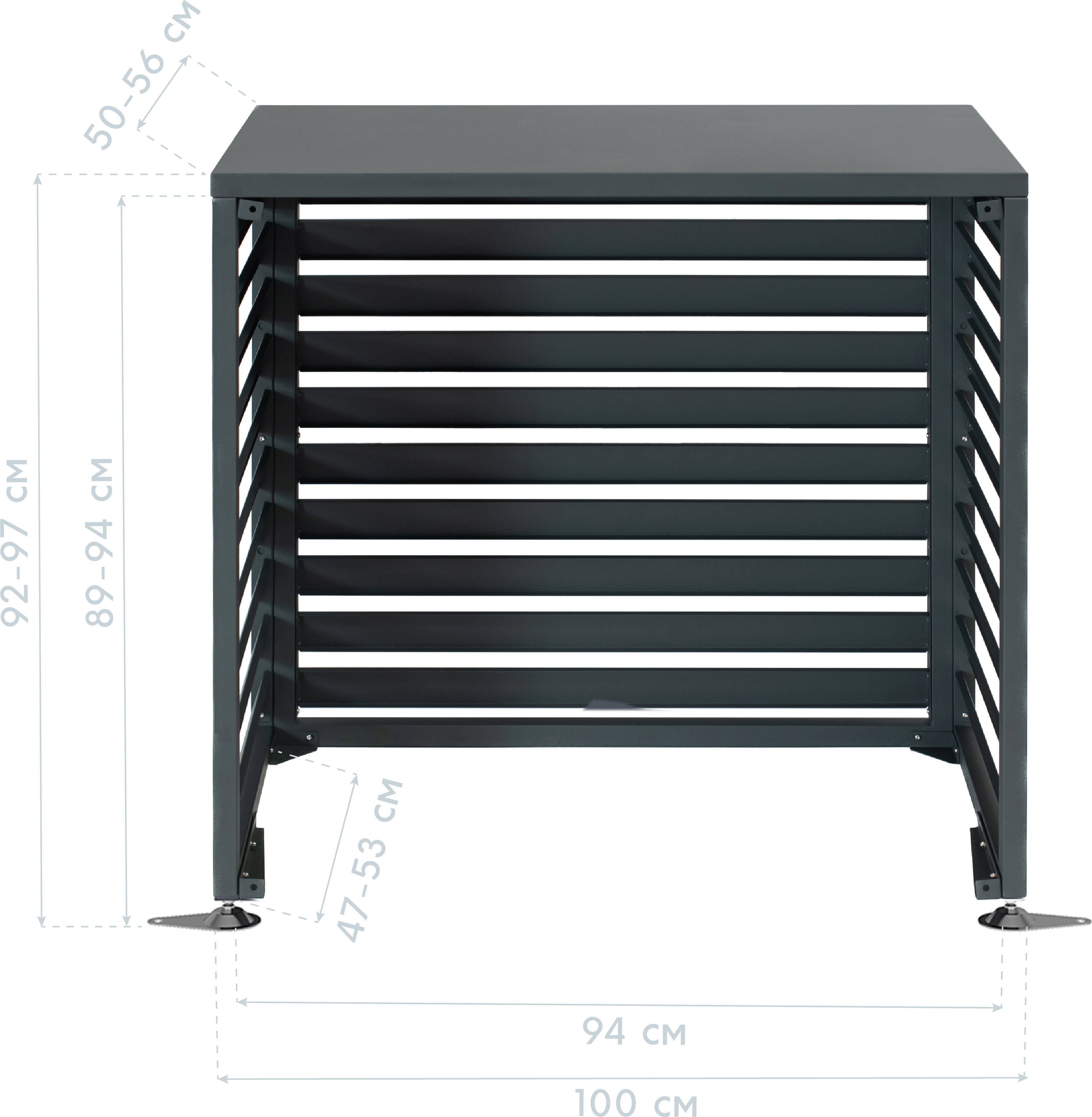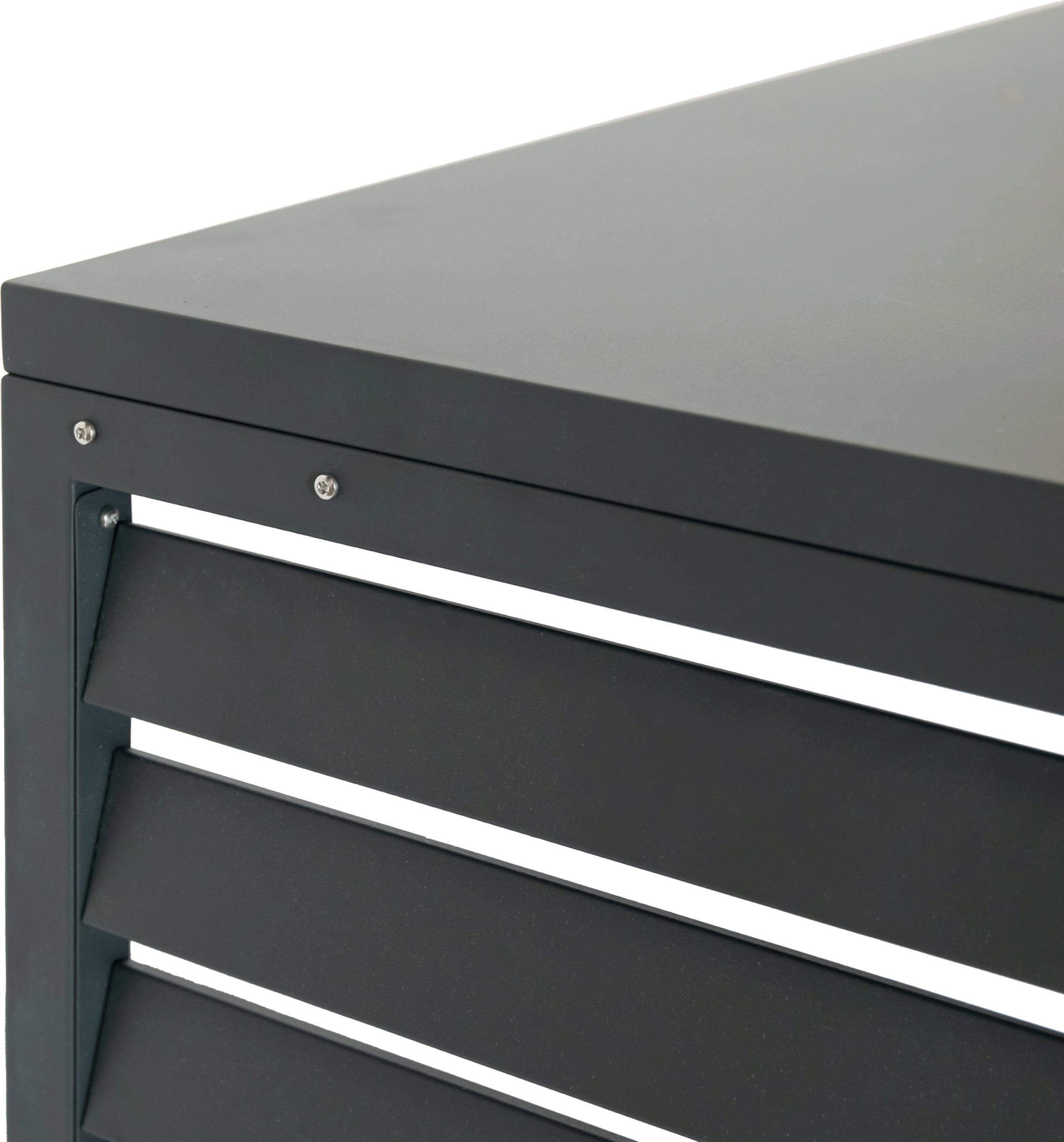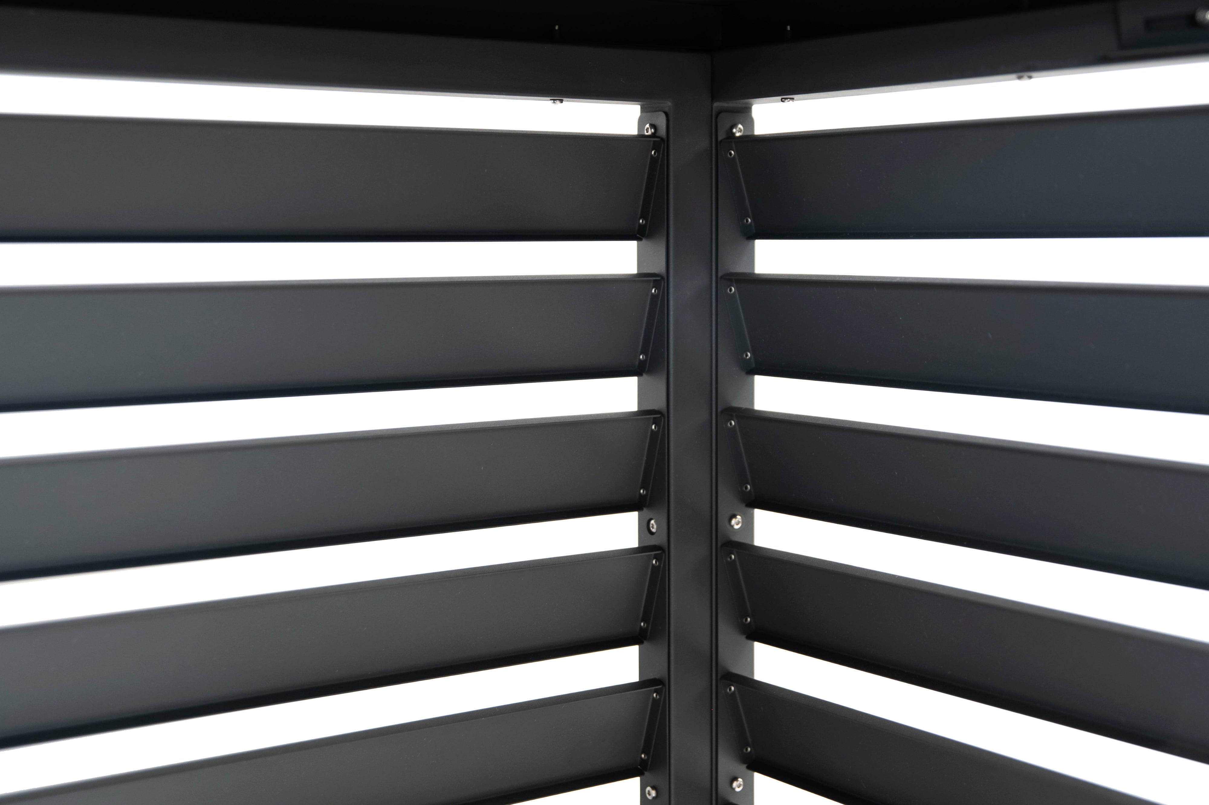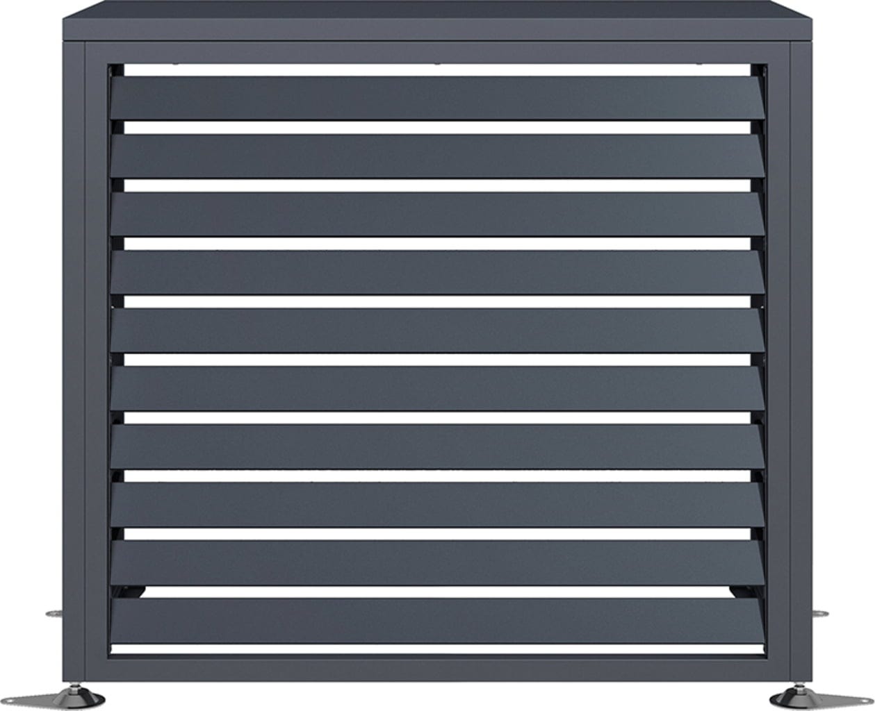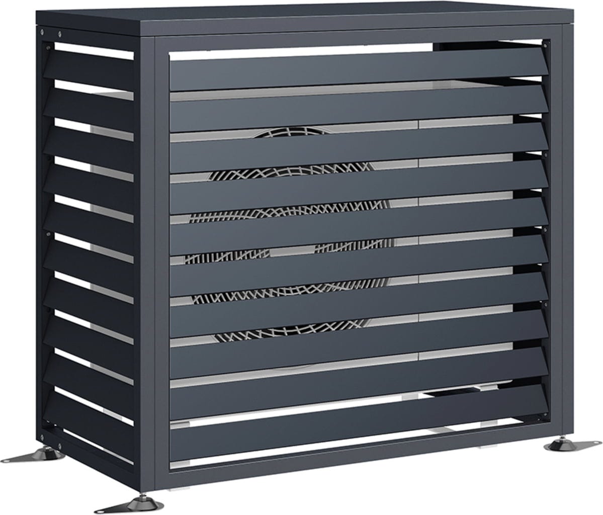Der luftige Kubus aus verzinktem und pulverbeschichtetem Stahl verbirgt geschickt deine Wärmepumpe oder Klimaanlage. Dabei überzeugt Boxa durch ein minimalistisches Anthrazit, das sich dezent in jede Fassadengestaltung einfügt und deinem Außenbereich sofort ein aufgeräumtes, hochwertiges Ambiente verleiht.
