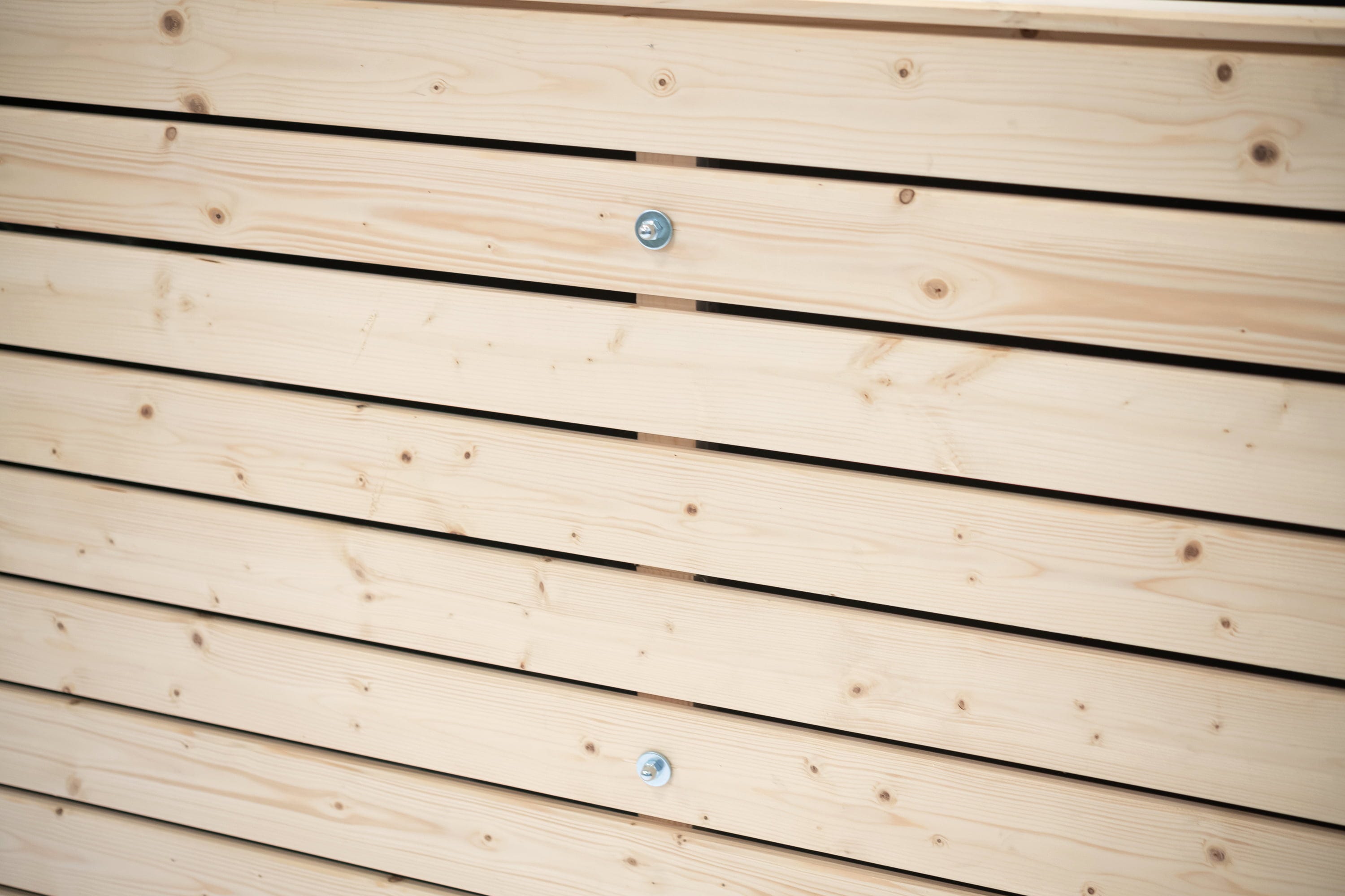 Das Holz ist unbehandelt. Um den optischen Zustand möglichst lange aufrechtzuerhalten, empfiehlt der Hersteller, das Holz vor der 1. Nutzung zu behandeln.