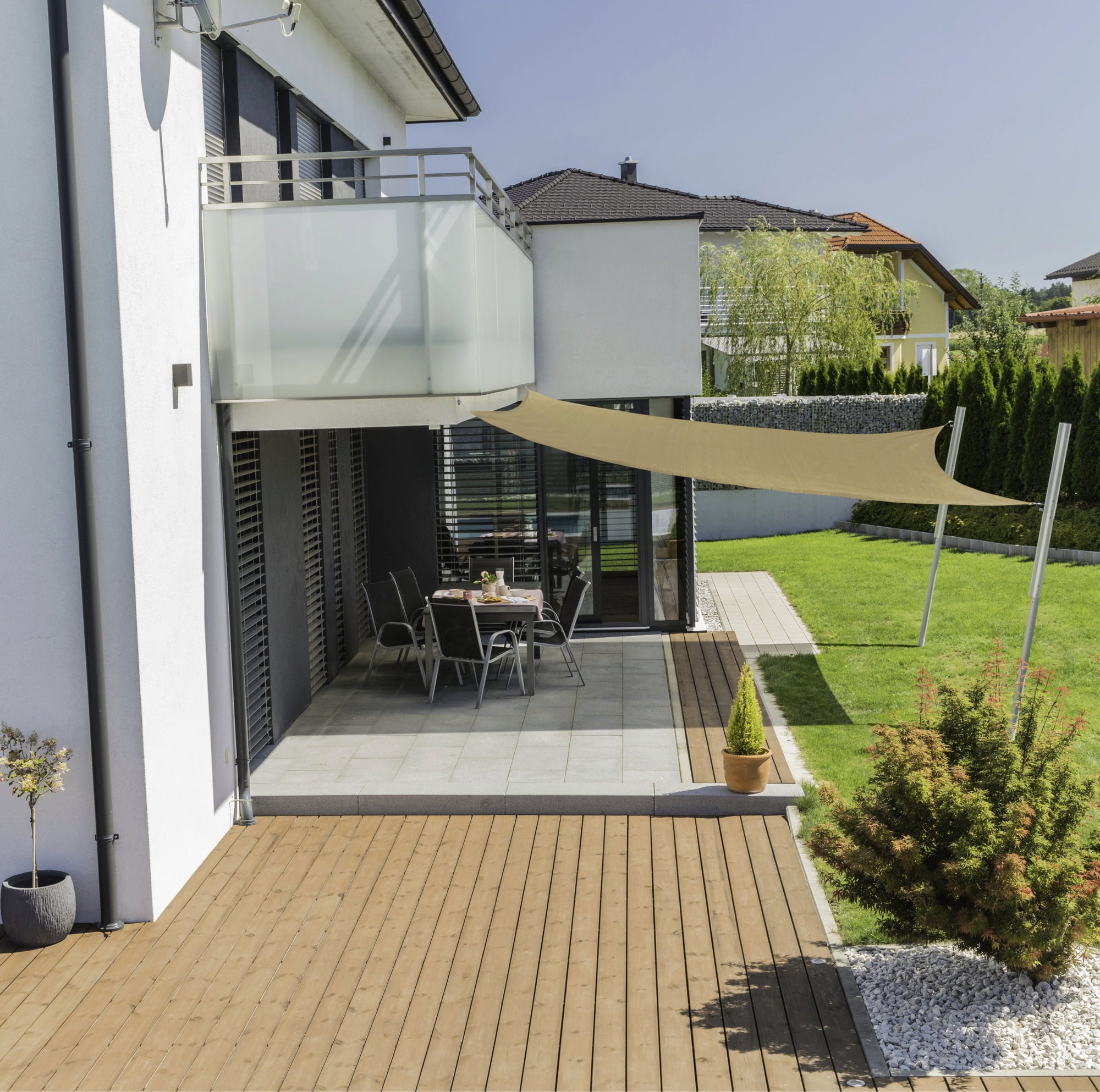 Um die schönen Sommertage Zuhause perfekt auskosten zu können, ist ein Schatten unerlässlich. Mit dem Sonnensegel Capri erzeugst du eine angenehme Beschattung und hier geht auch kein kostbarer Platz als Stellfläche - wie bei einem Sonnenschirm zum Beispiel - verloren. Es ist schnell und leicht zu befestigen und kann jederzeit wieder abgenommen werden, falls du dich einmal für eine andere Farbe entscheiden solltest.