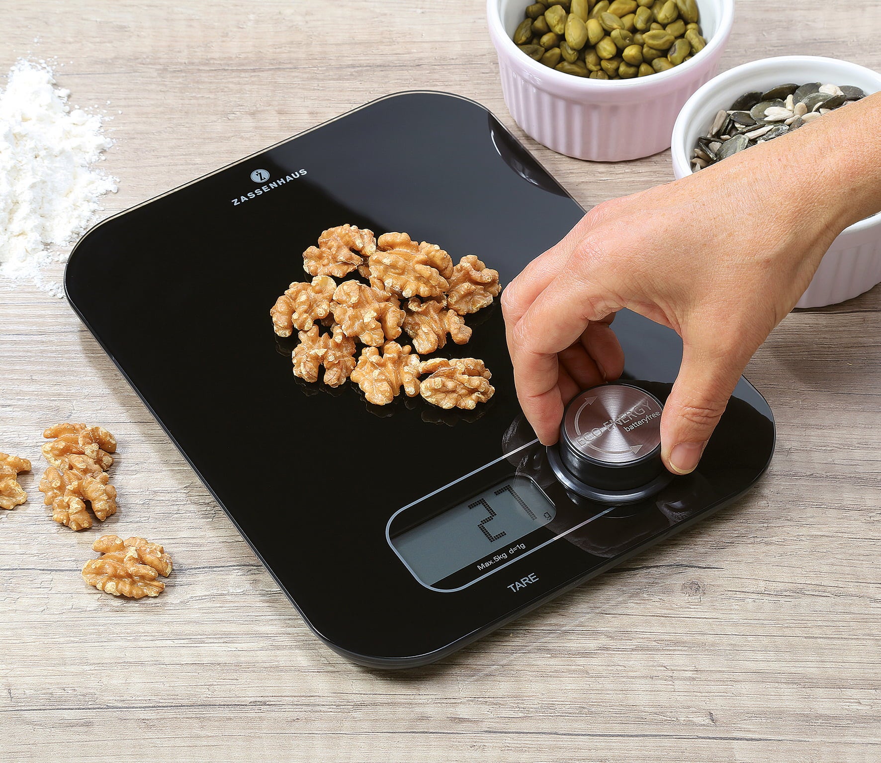 Die Zassenhaus Digital-Waage Eco Energy bringt maximale Genauigkeit in deine Küche – ganz ohne Batterien! Einfach per Dynamo betrieben, misst sie bis zu 5 kg in 1-g-Schritten. Praktisch, robust und nachhaltig – ein cleverer Küchenhelfer, der dich zuverlässig beim Backen und Kochen unterstützt.